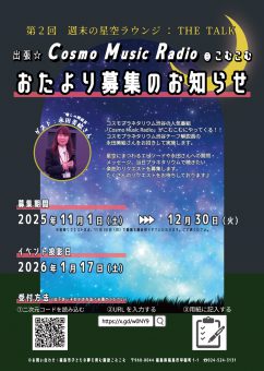 第2回 週末の星空ラウンジ:THE TALK 出張☆Cosmo Music Radio @こむこむ おたより募 […]