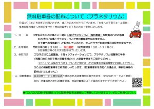 【平日:4階プラネタリウム有料番組観覧者向け】無料駐車券配布について