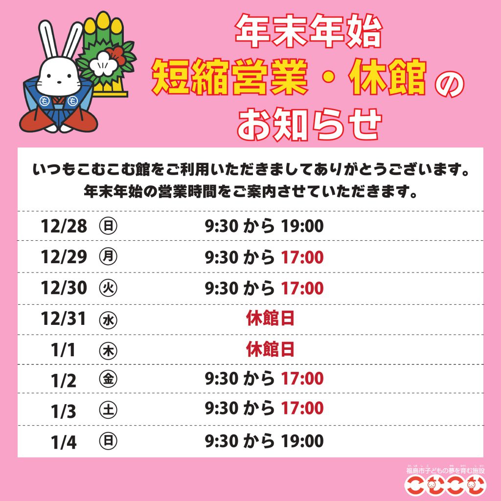 12月28日(日曜日):午前9時30分から午後7時00分まで