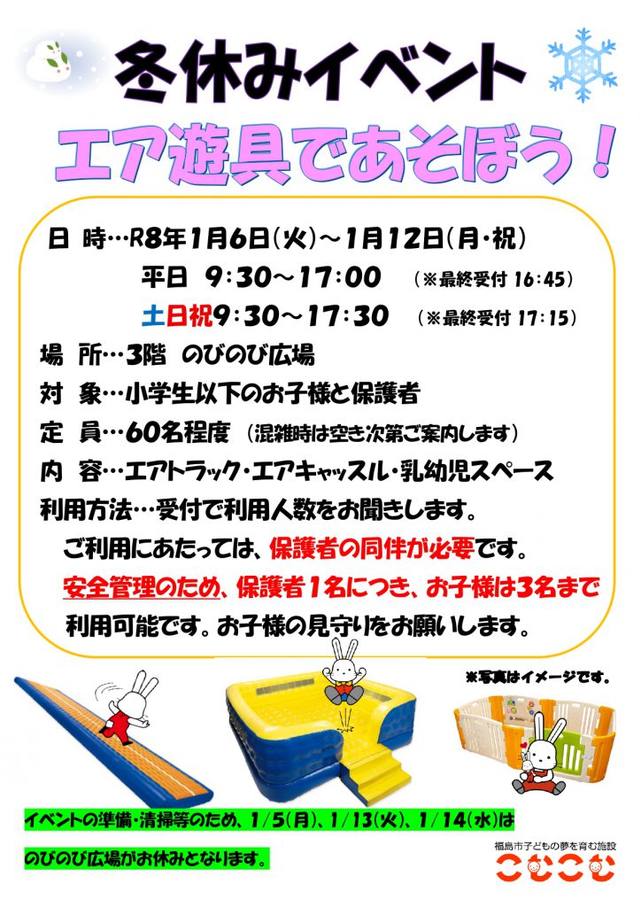 冬休みイベント『エア遊具であそぼう!』のご案内です。