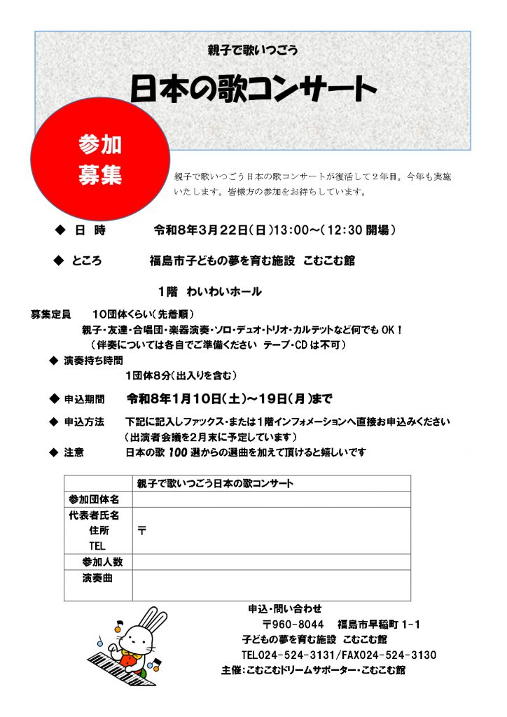 応募用紙に記入し、ファックス(024-524-3130)・または1階インフォメーションへ直接提出ください。