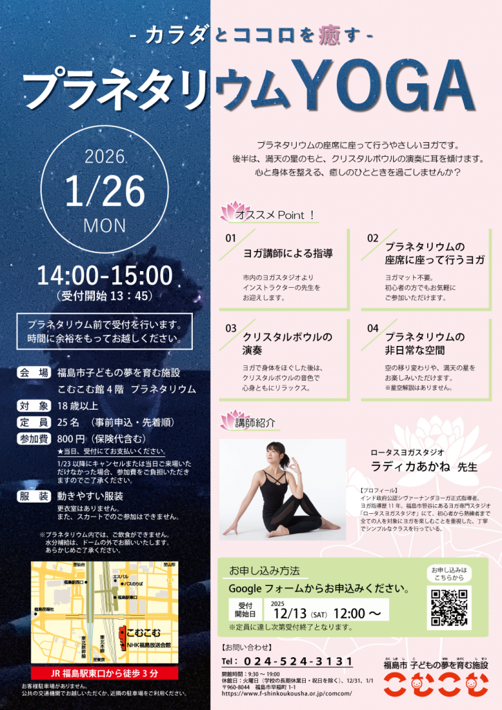 プラネタリウムの座席に座って行うやさしいヨガです。