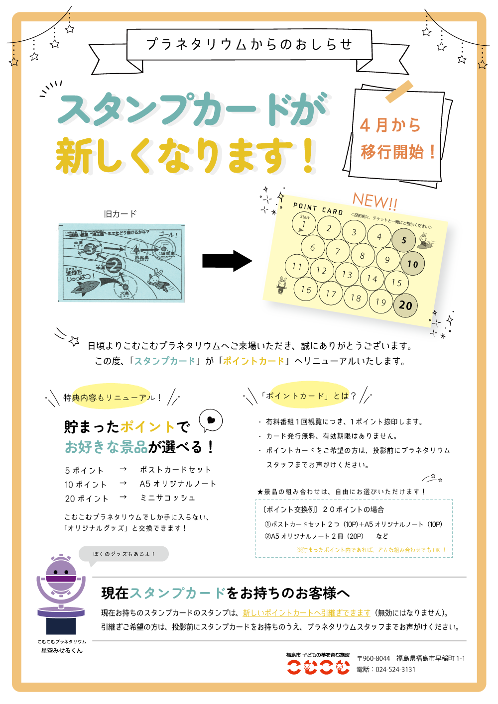 プラネタリウム スタンプカードリニューアル について(令和8年4月~)