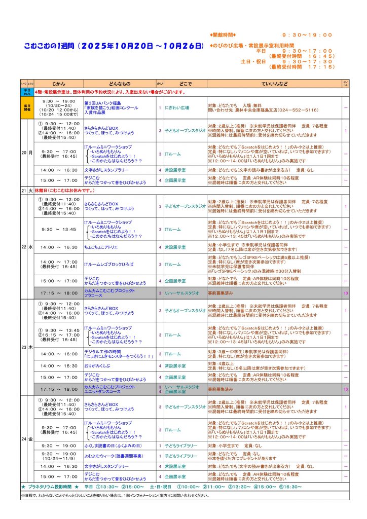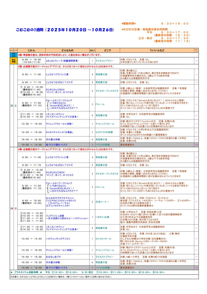 ・こむこむの1週間[10月20日(月曜日)から10月26日(日曜日)まで](PDF:168KB)