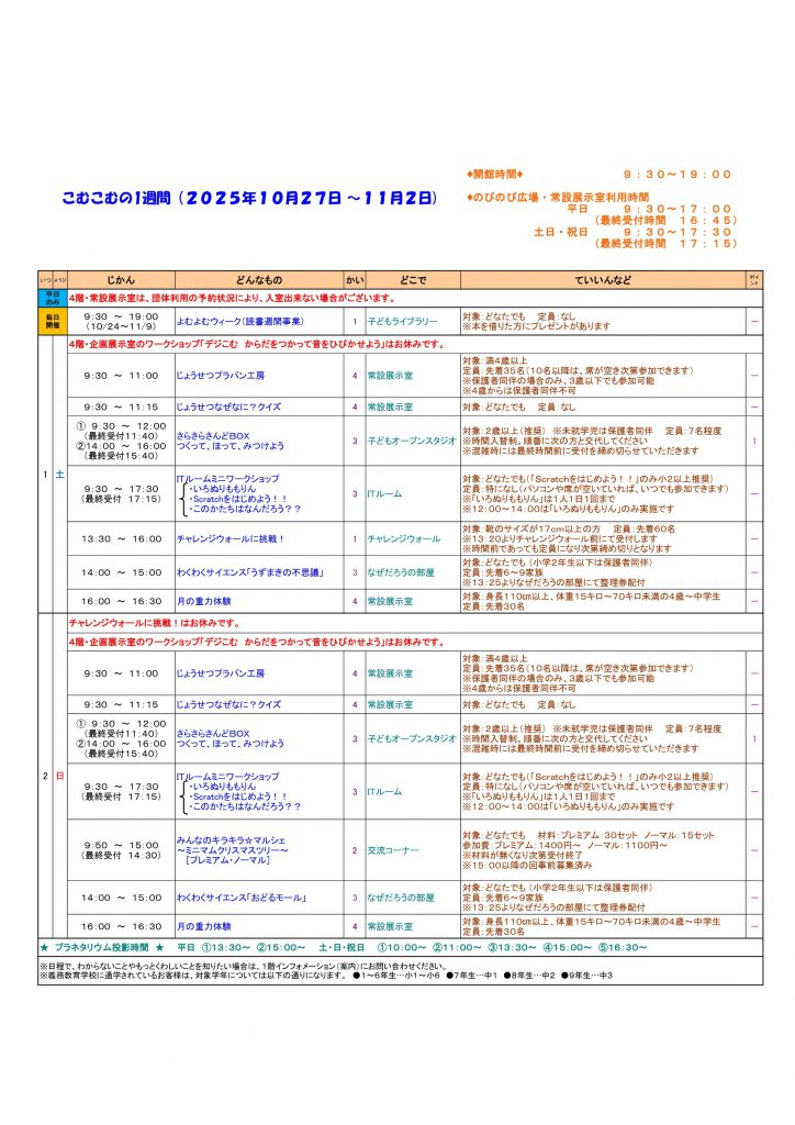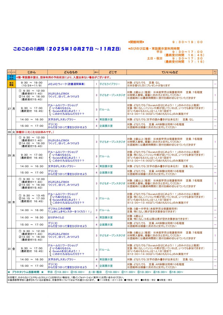 ・こむこむの1週間[10月27日(月曜日)から11月2日(日曜日)まで](PDF:168KB)