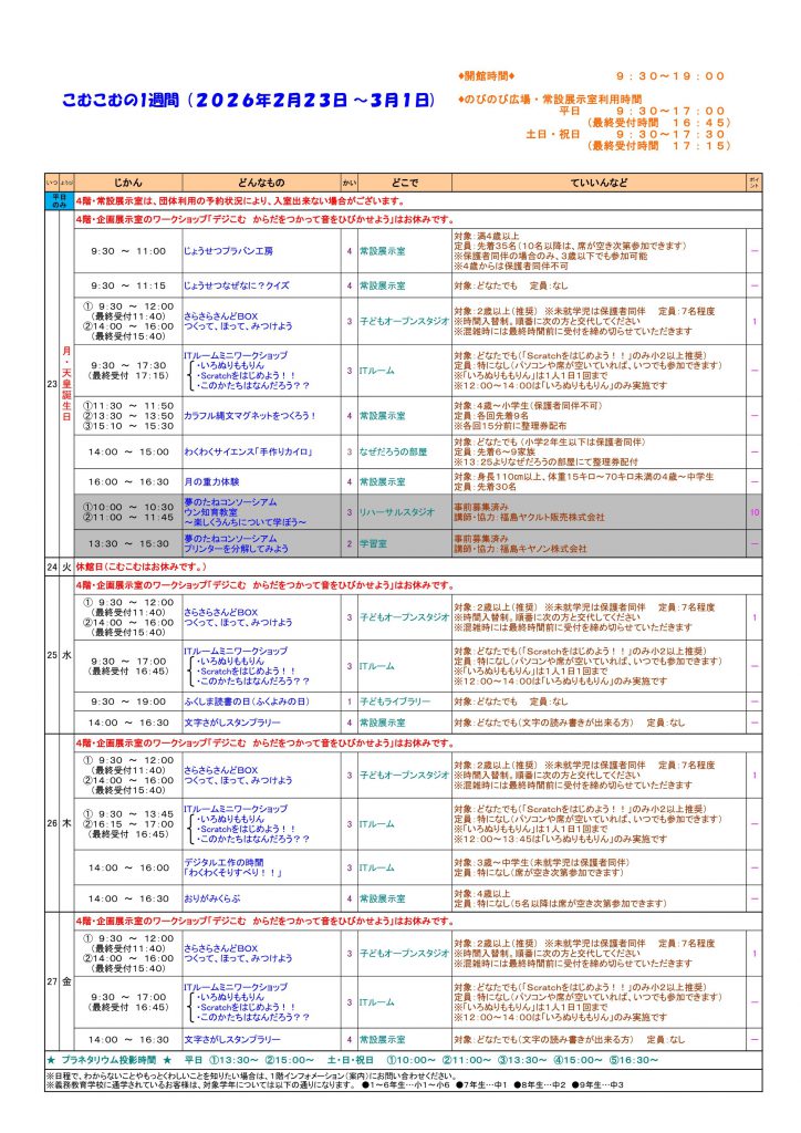 ・こむこむの1週間[2月23日(月曜日)から3月1日(日曜日)まで](PDF:168KB)