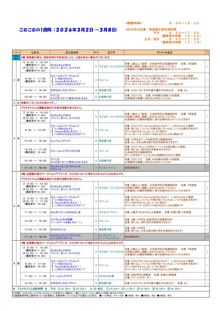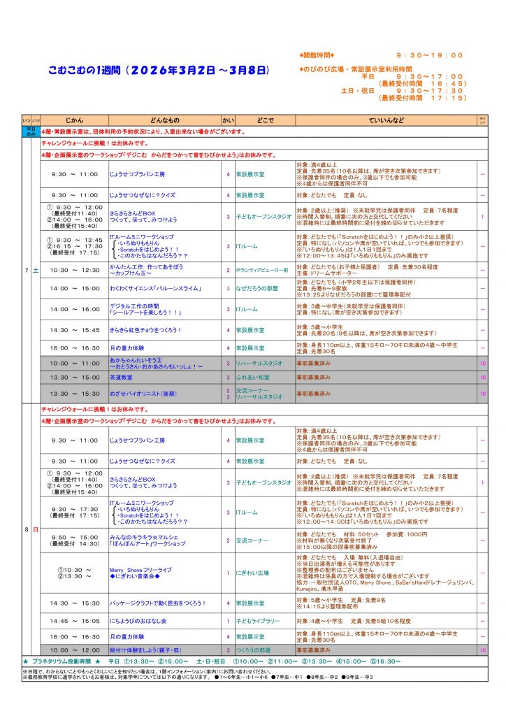 ・こむこむの1週間[3月2日(月曜日)から3月8日(日曜日)まで](PDF:168KB)